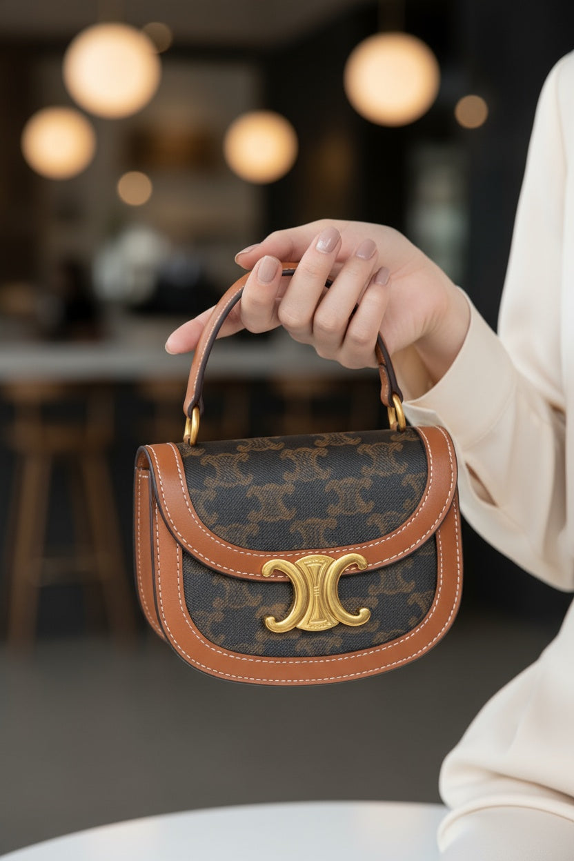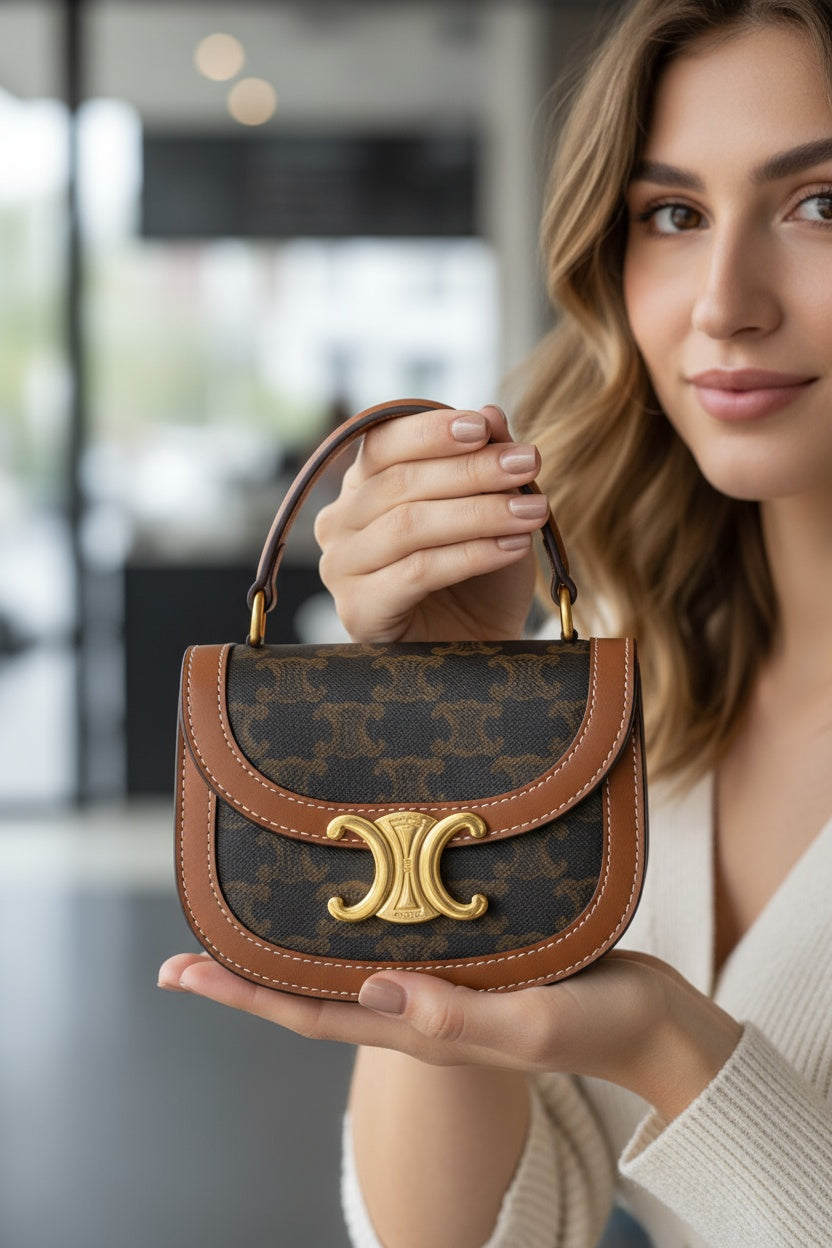Тази Céline Mini Triomphe е идеалният избор за дами, търсещи баланс между стил и компактност — луксозен акцент, който говори сам за себе си.