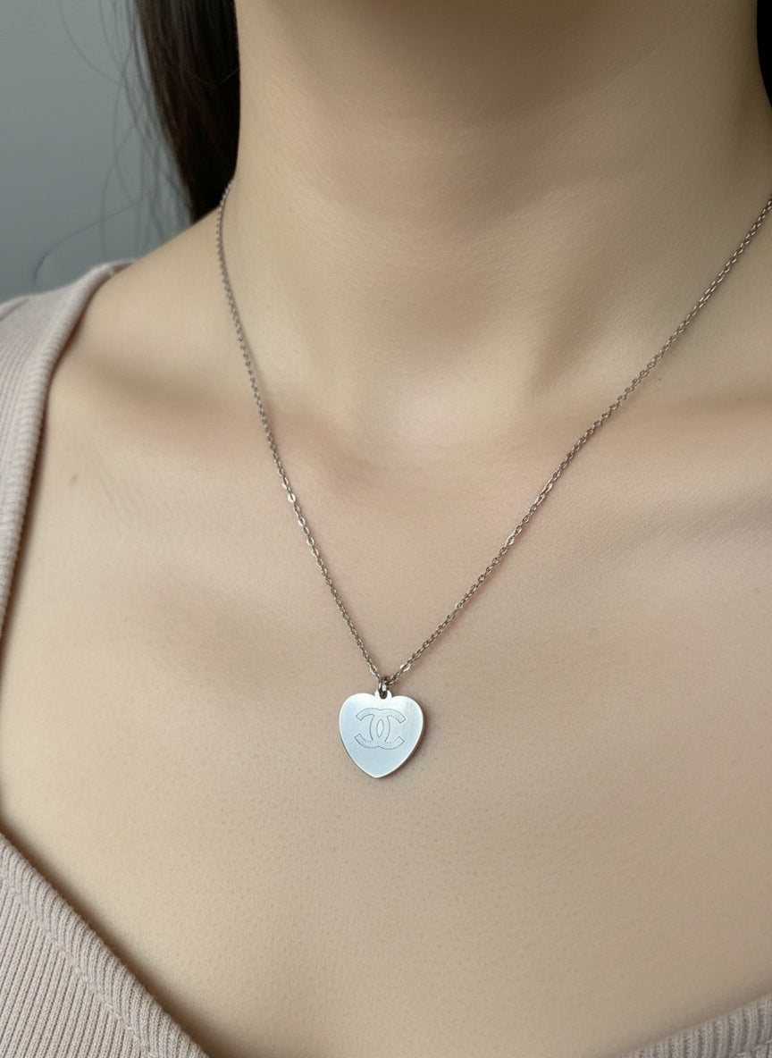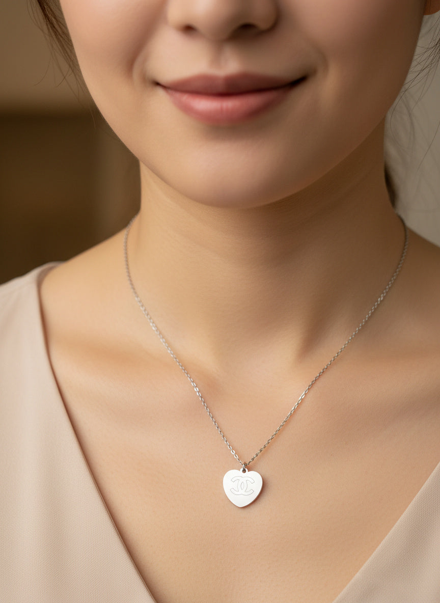 Елегантно дамско колие CH със сребриста фина верижка и нежна сърцевидна висулка, украсена с емблематичното лого на марката. Дизайнът е изчистен и женствен, което прави бижуто изключително универсално и подходящо за ежедневна визия или стилен акцент при специални поводи. Изискан аксесоар, който добавя дискретен лукс и класическо излъчване към всяка визия.