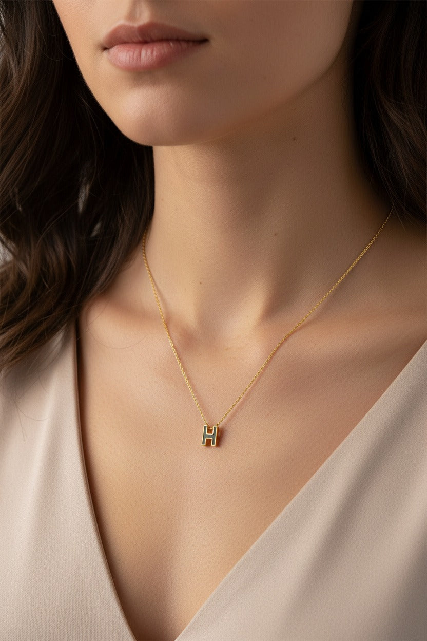 Елегантно дамско колие H с позлатено покритие и изчистен дизайн, акцентиран с емблематичната буква H. Фината верижка подчертава минималистичния характер на бижуто, а дискретният символ придава луксозно и разпознаваемо излъчване.