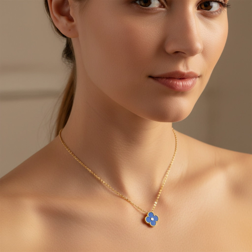 Нежно дамско колие VC с позлатено покритие и емблематичен флорален мотив, вдъхновен от класическата естетика на марката. Дизайнът е фин и изискан, съчетаващ елегантна верижка и декоративен елемент, който придава деликатен акцент и женствено излъчване.