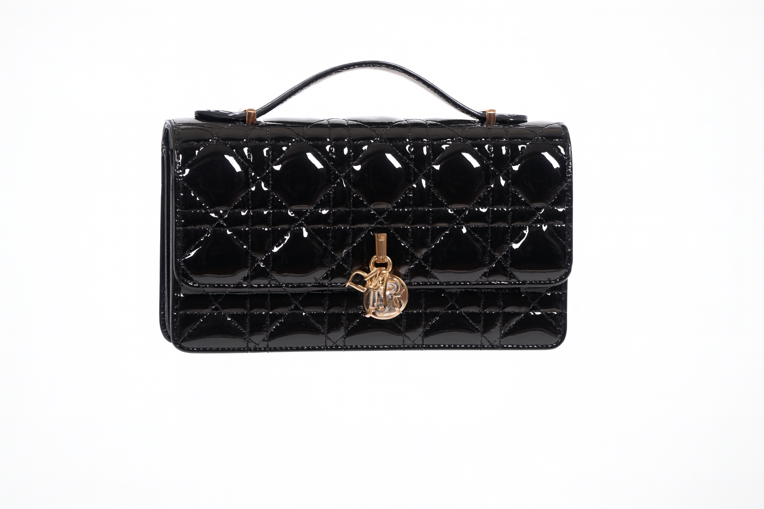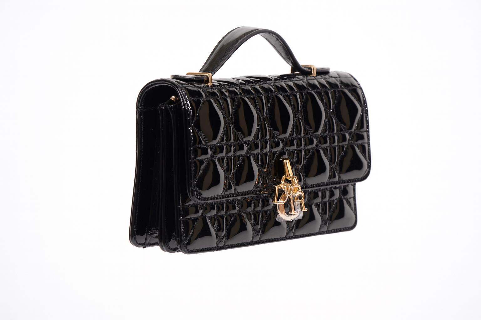 D Caro Bag — Черна лачена чанта с позлатени детайли