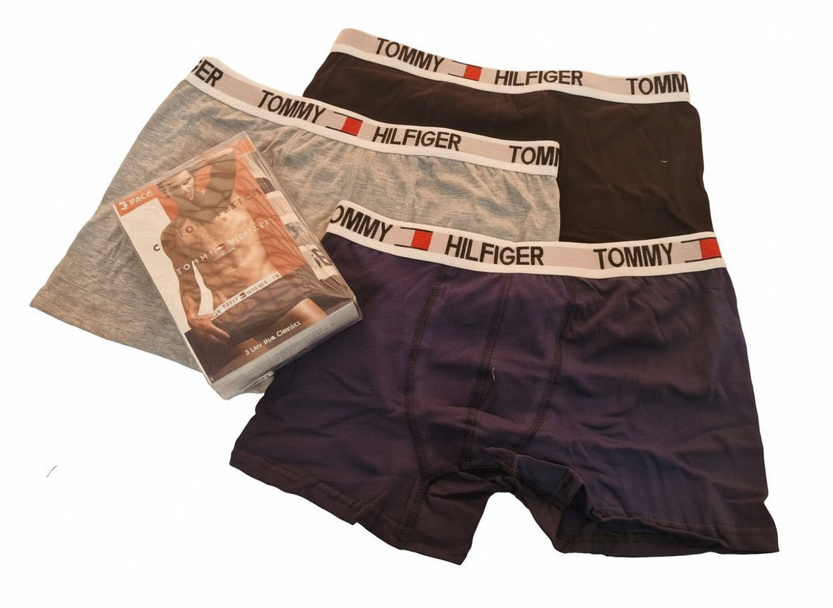 Комплект мъжки боксерки TH, изработени от висококачествена, мека и еластична материя за максимален комфорт през целия ден. Класическият дизайн е допълнен от характерен ластик с логото на марката, който осигурява удобно прилягане и стилен завършек. Подходящи както за ежедневна употреба, така и за активен начин на живот, тези боксерки съчетават функционалност, издръжливост и емблематичния стил на TH.