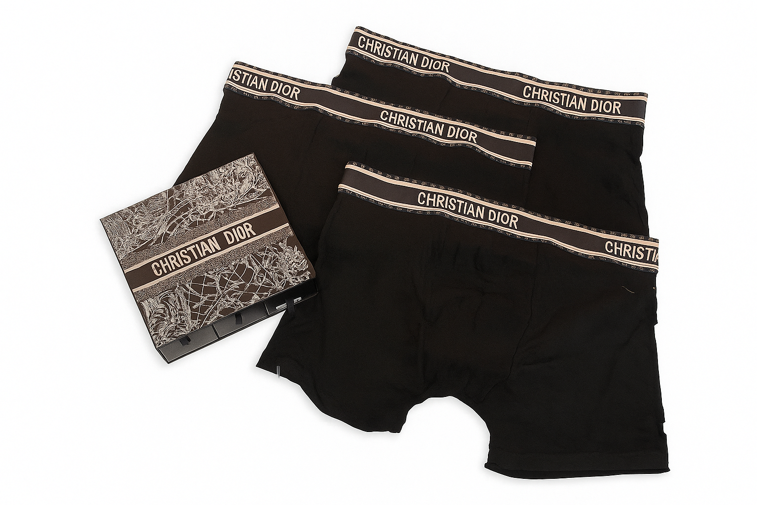 CD представя комплект от 3 броя черни боксерки с елегантен колан в бежово, носещ логото на марката. Изработени от мека и удобна материя, тези боксерки предлагат комфорт през целия ден. Те идват в луксозна кутия с дизайнерски елементи и са идеални както за лично ползване, така и за стилен подарък.