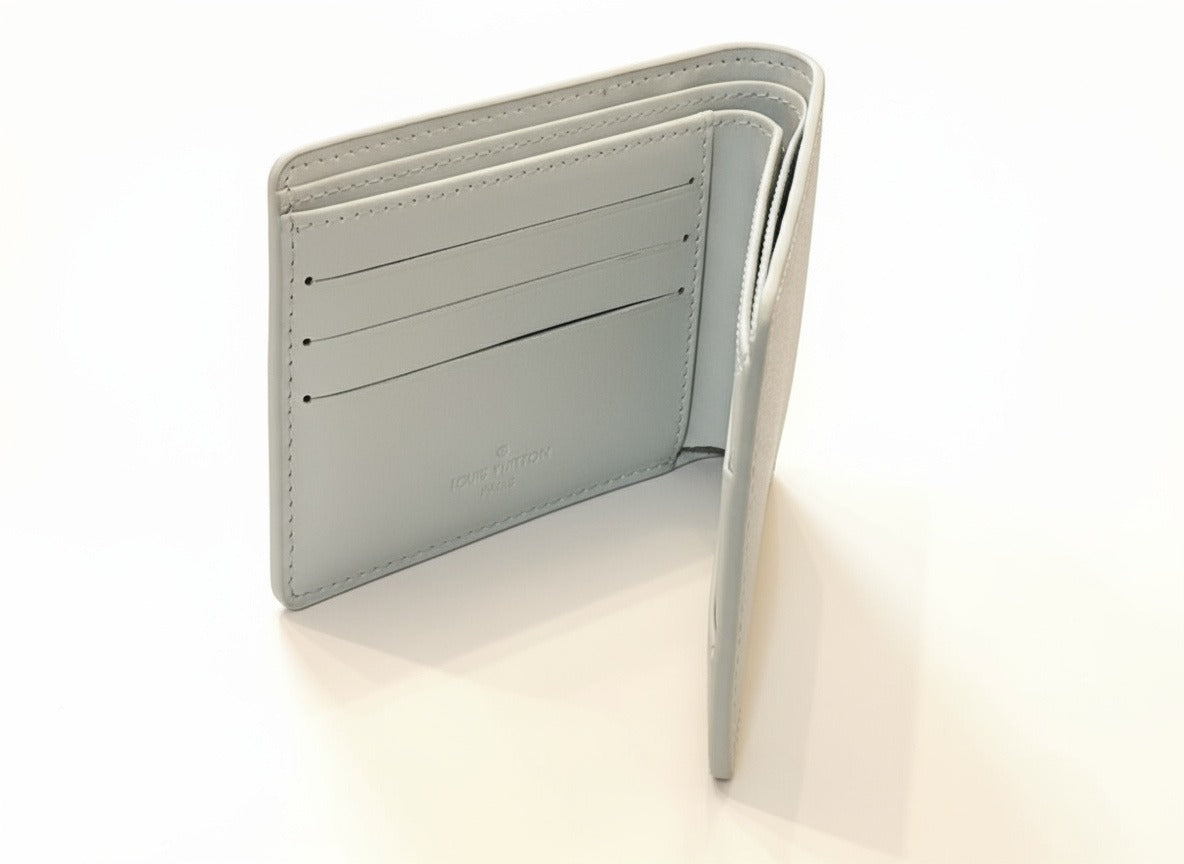 Този изтънчен портфейл LU впечатлява с минималистичен дизайн и безупречна изработка. Изработен от висококачествена естествена кожа в нежен сив нюанс, той излъчва елегантност и модерен лукс.