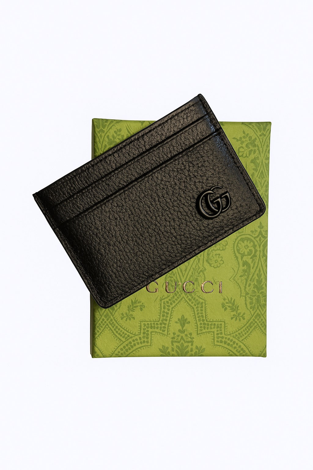 Елегантен унисекс кардхолдер GU, изработен от първокласна естествена кожа с фина текстура и изчистен дизайн. Класическият черен цвят, комбиниран с дискретното черно лого GG, създава модерен и стилен акцент за всеки повод.