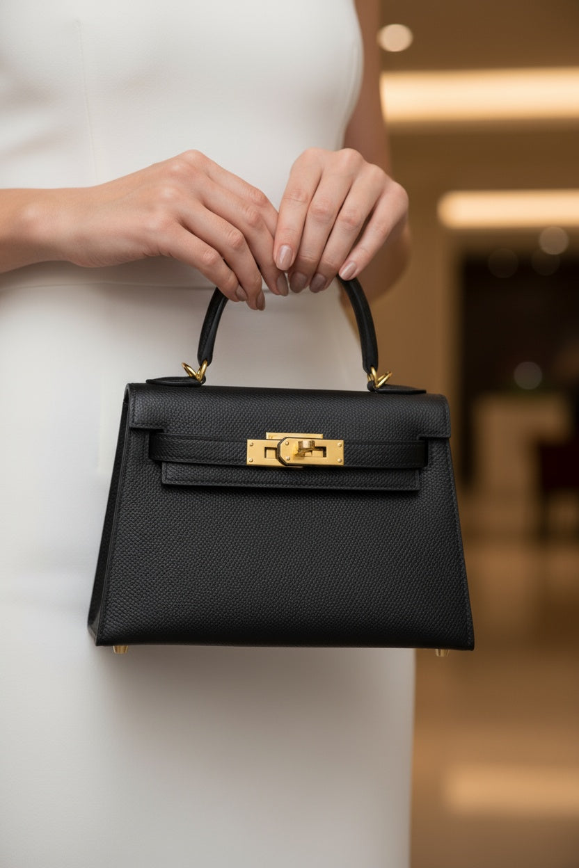 Легендарната H K Mini е олицетворение на неподвластната на времето елегантност и прецизността на френската изработка. Тази дамска чанта в класическо черно е създадена за жената, която цени изтънчеността, детайла и вечния стил.