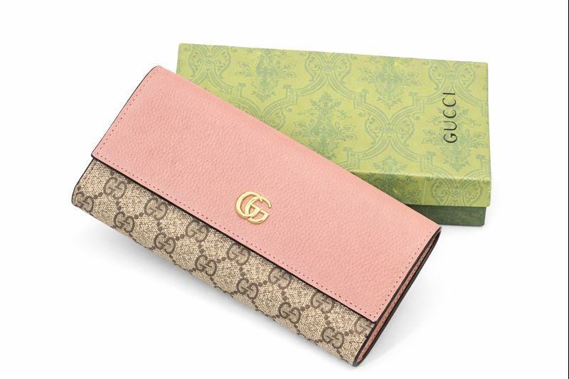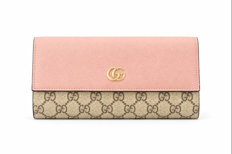 Елегантно дамско портмоне GU, съчетаващо класически дизайн с практична функционалност. Моделът е изработен от висококачествена еко кожа с характерен монограмен десен и контрастен капак в нежен розов нюанс, който придава изискан и женствен акцент.