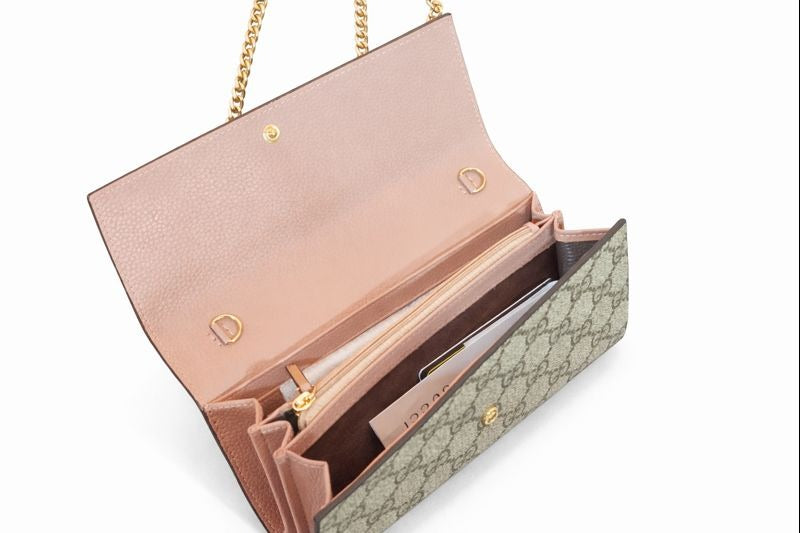 Портмонето разполага с подвижна златиста верижка, която позволява носене и като компактна дамска чанта през рамо – идеално решение за вечерни излизания или специални поводи. Вътрешното пространство е добре организирано с отделения за банкноти, карти и монети, осигурявайки удобство и сигурност.