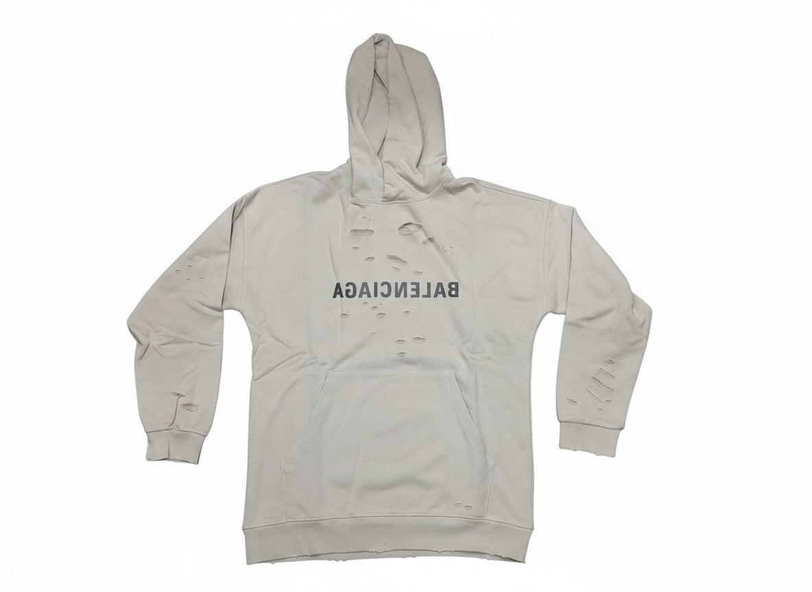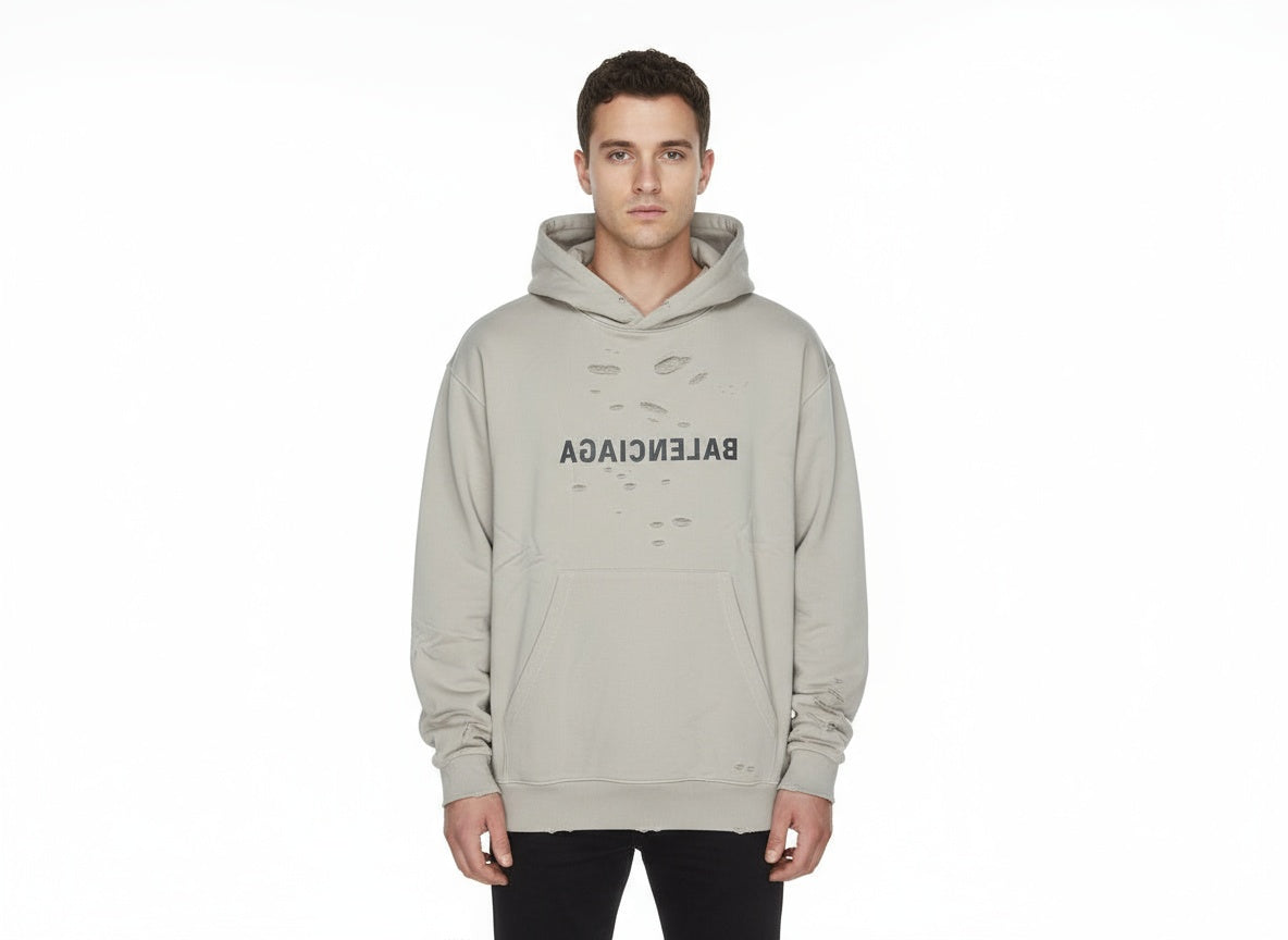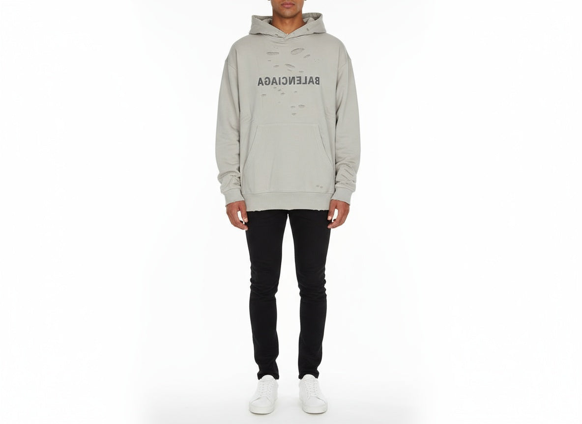 Изрази своята индивидуалност с това емблематично худи Balenciaga, част от селекцията на VogueVelvet. Моделът впечатлява с автентичен “distressed” дизайн, обърнат надпис и характерната oversize кройка, която съчетава лукс и улична естетика.