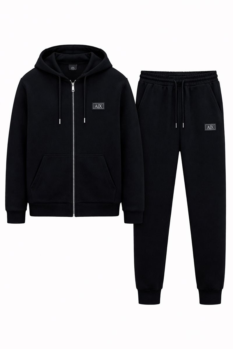 Елегантният мъжки спортен комплект съчетава съвременен градски стил с изчистена спортно-луксозна визия. Изпълнен в класически черен цвят, сетът излъчва модерна естетика, подчертана мъжественост и минималистичен дизайн, който придава завършен и стилен облик.