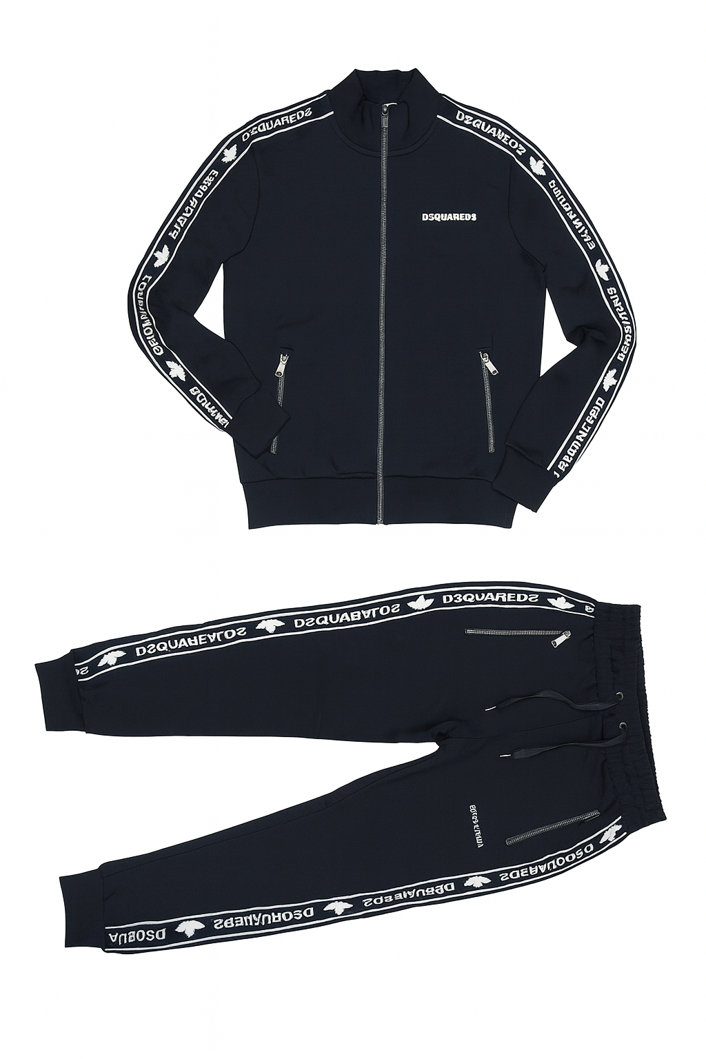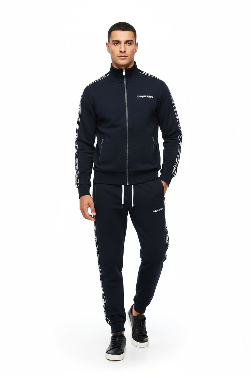 Горнището е със спортно излъчване, изчистен цип и характерните бели ленти по ръкавите с логото DSQUARED2, които подчертават премиум стила на марката. Долната част следва същата линия – с удобна кройка, ластичен колан с връзки и странични джобове с ципове за практичност.