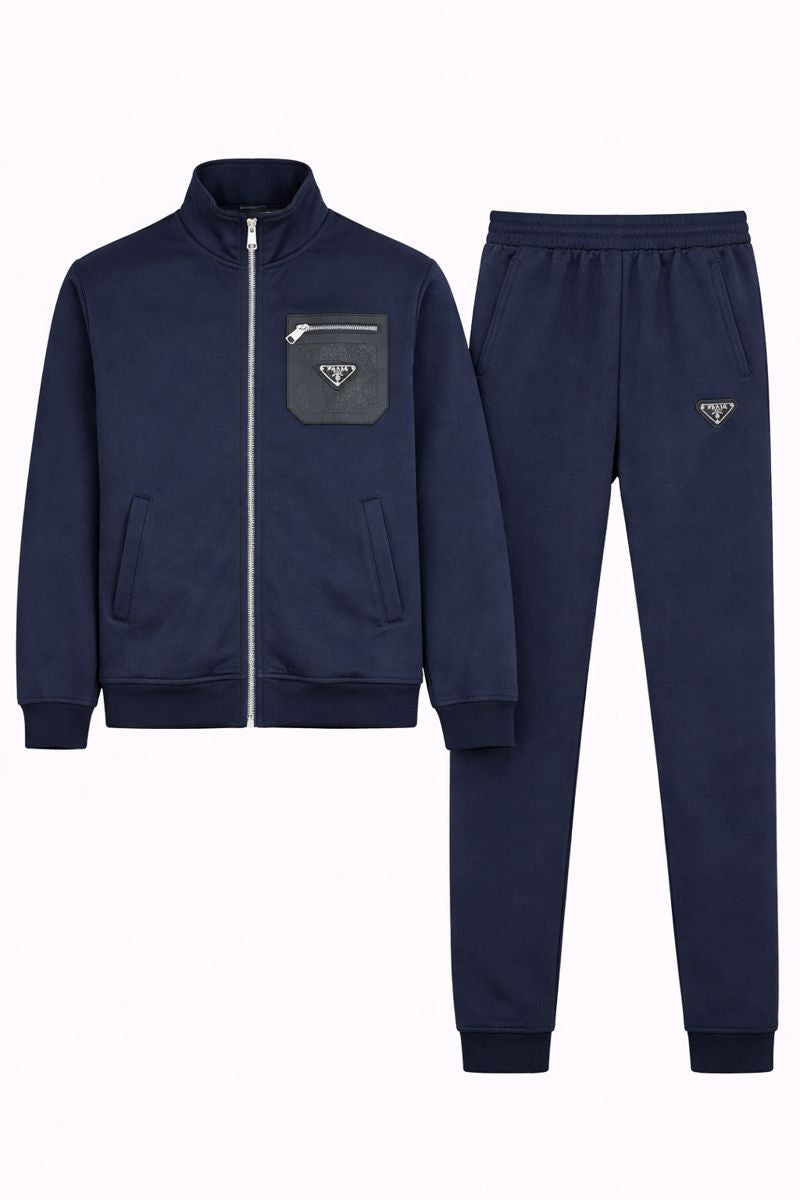 Мъжкият спортен комплект P въплъщава съвременния луксозен минимализъм с ясно изразена елегантност и функционален дизайн. Изпълнен в стилен тъмносин цвят, комплектът излъчва изисканост и модерна мъжественост, подчертани от характерния триъгълен емблематичен детайл P, който придава завършен и разпознаваем облик.