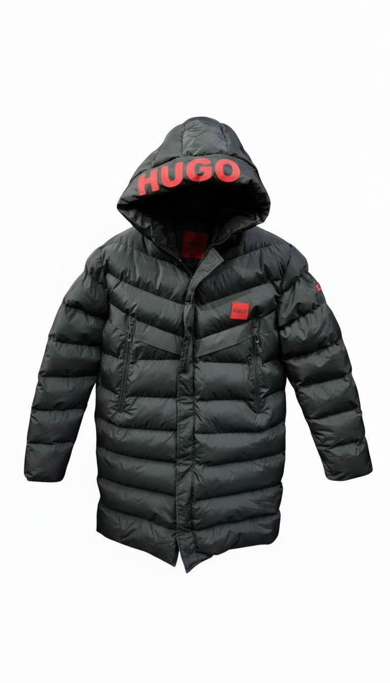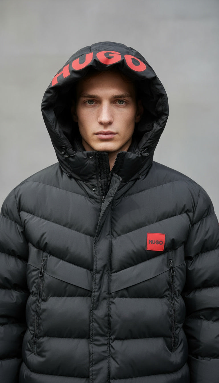 Характерният червен надпис HUGO върху качулката и логото на гърдите добавят отличителен и модерен акцент към дизайна. Пълнежът осигурява топлина без излишна тежест, а джобовете с цип придават функционалност и удобство.