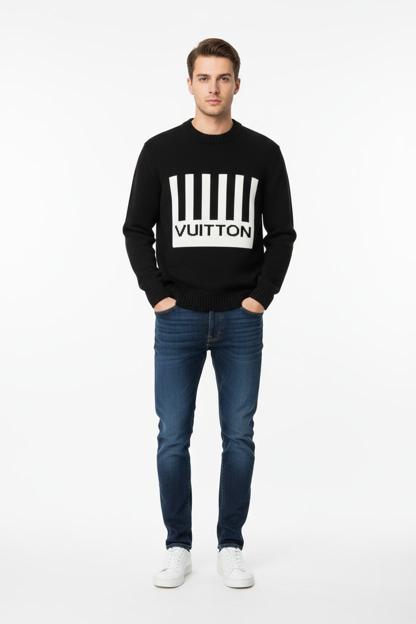 Модерен минимализъм, вдъхновен от градската елегантност. Този плетен пуловер Louis Graphic Monogram в черно с контрастен бял принт съчетава изчистена визия и престижна идентичност.