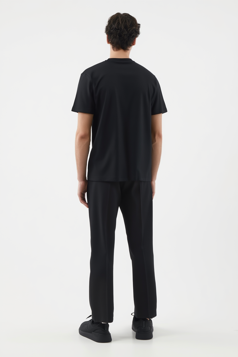 Класическата кройка с къс ръкав и обло деколте придава универсалност и позволява лесно комбиниране както с ежедневни, така и с по-елегантни визии. Централният принт добавя характер и модерно излъчване, превръщайки тениската в стилен акцент към всяка визия.